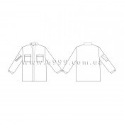 Куртка "Арсенал" - це подовжена модель, прямого силуету, з потайною центральною застібкою на ґудзиках. Комір "стійка" з застібкою на липучку. Позаду, в області лопаток зроблені виточки, типу "книжка". На грудях нашито 2 кишені, з клапанами на липучках. На лівому рукаві є подвійна кишеня, яка складається з накладної кишені на блискавці та нашитої, зверху, на неї, накладної кишені з двома відділеннями.