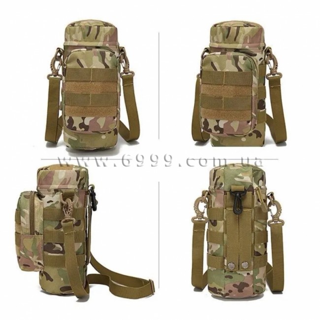 Підсумок під пляшку виготовлено у вигляді циліндричної кишені, з верхньою кришкою на блискавці. З боку розташовано об'ємну кишеню, на блискавці, на яку, у два ряди нашиті стрічки системи Молле. У бігунки блискавок додано пуллери. Призначений для поясного носіння або через плече або на системі Молле, пляшки орієнтовним об'ємом 1 л. На циліндричну кишеню, з обох боків від об'ємної кишені, у три ряди, нашиті стрічки системи Молле. У верхній частині циліндричної кишені, з обох боків, пришиті петлі з пластиковими напівкільцями, за які чіпляється ремінна стрічка(додається у комплекті), для носіння підсумку через плече. На внутрішній стороні підсумку нашито два ремені, з кнопками, для кріплення підсумку до інших систем Молле.