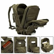 Тактичний рюкзак, об'ємом 50 літрів, має два великих внутрішніх відділення та два малих накладних. Усі відділення застібаються блискавкою, з двома бігунками, на які додано пулери. На верхнє накладне відділення нашито текстильну стрічку для чіпляння шевронів. На лицьовій частині, та з боків нашиті стрічки системи кріплення Молле. Також з боків присутні регульовані ремінні обмежувачі, що дозволяють регулювати об'єм рюкзака. Плечові лямки регулюються, по довжині за допомогою пластикових рамок. На плечові лямки нашиті об'ємні підкладки. На рівні грудей плечові лямки з'єднуються горизонтальним ремінцем на фасткесній застібці. На рівні поясу рюкзак кріпиться до людини за допомогою ще одного ремінця з фастексною застібкою. Об'єм рюкзака можна регулювати бічними ремінцями, за допомогою фастексних застібок. На тильній стороні (та що прилягає до спини, нашита об'ємна сітчаста тканина). Уся фурнітура виготовлена з ударостійкого пластику, що стійкий до УФ-випромінювання.