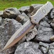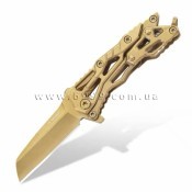 Непальський ніж "Кукрі" - це мисливський ніж призначений для носіння на поясі у піхвах. На руків'ї дві накладки з дерева. Лезо ножа має характерний вигін який називається "крило сокола" та заточений по вгнутій стороні клинка. Ніж важкий та має перекіс ваги ближче до вістря леза. Історичне застосування цього ножа - бойове. Зараз він застосовується мисливцями при розділу туши звіра, а точніше для перерубання кісток. У комплекті маються піхви, виготовлені зі штучної шкіри.