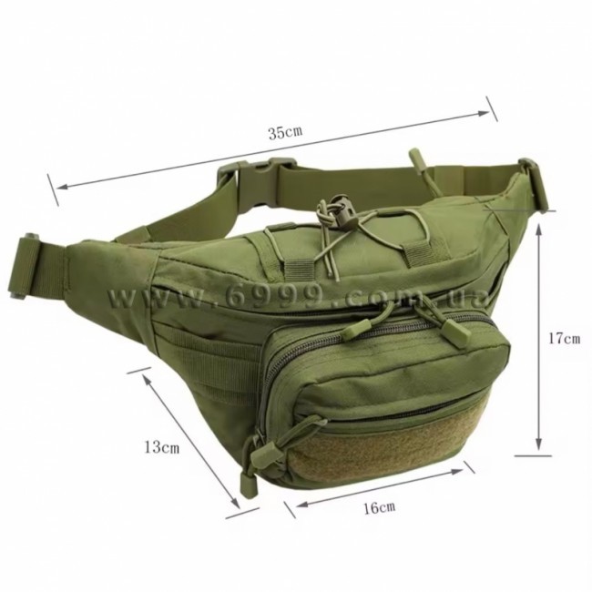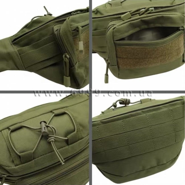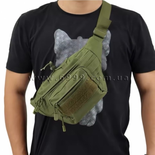 Сумка-бананка - це тактична сумка призначена для носіння через плече або на поясі. Являє собою велику моно-кишеню до якої пришиті ремені лямки, довжиною 135 см, з фастексним карабіном та двома пластиковими рамками для регулювання довжини ремінної лямки. До моно-кишені пришито об'ємну кишеню, з боку якої нашито накладну кишеню. З зовнішньої сторони на накладну кишеню нашита липучка, призначена для кріплення шеврона. З внутрішньої сторони моно-кишені присутня врізна кишеня, для документів, та по всій довжині нашито стрічки системи Молле. З верху, на клапані моно-кишені, є чотири ремінні петлі через які проходить еластичний шнур, з фіксатором.