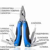 Мультитул "WORKER-5183" - на відміну від традиційного мультитулу має пластикові накладки, на руків'я, двох кольорів та пружину підкладену у руків'я плоскогубців. Усі робочі поверхні та основа руків'я виготовлено з нержавіючої сталі. Комплектується чохлом, виготовленим з синтетичної тканини "Oxford 400D", чорного кольору. Довжина(у складеному стані) - 100 мм. Довжина клинка - 58 мм. Товщина - 47 мм.