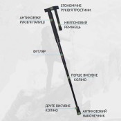 Туристична розкладна палка для пішої ходьби складається з трьох колін, що висуваються одне з одного, руків'я та антиковзкого наконечника. На руків'я прикріплено нейлоновий ремінець, що запобігає вислизанню палиці з руки. У руків'ї розташована кнопка що розблокує складання колін. Палка може слугувати як зброя самозахисту від собак.