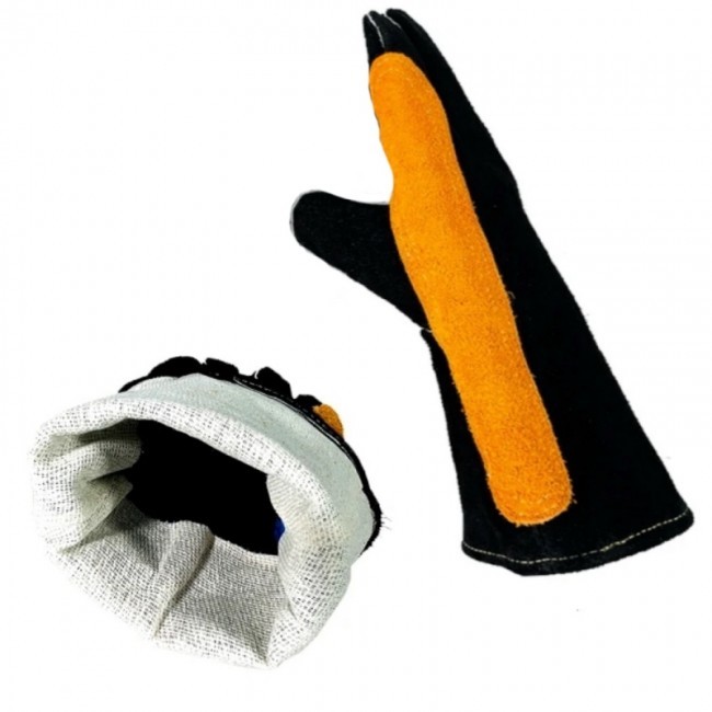 "Краги" - рукавички виготовлені з телячого спілка, з двома підсилювальними накладками. Перша накладається на шов який починається на вказівному пальці та йде до великого пальця і далі по зап'ястя. Друга накладається на шов, що йде навколо великого пальця. Має внутрішню підкладку білого кольору виготовлену з бавовняної тканини. Складається з двох частин - рукавички та подовженої манжети. Прошиті вогнестійкими нитками, двома рядками швів. Призначені для виконання зварювальних робіт та робіт де присутні іскри.