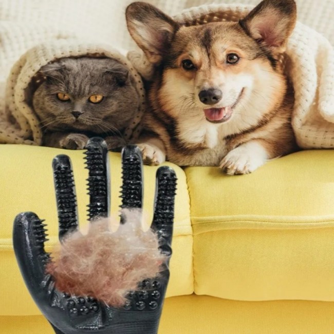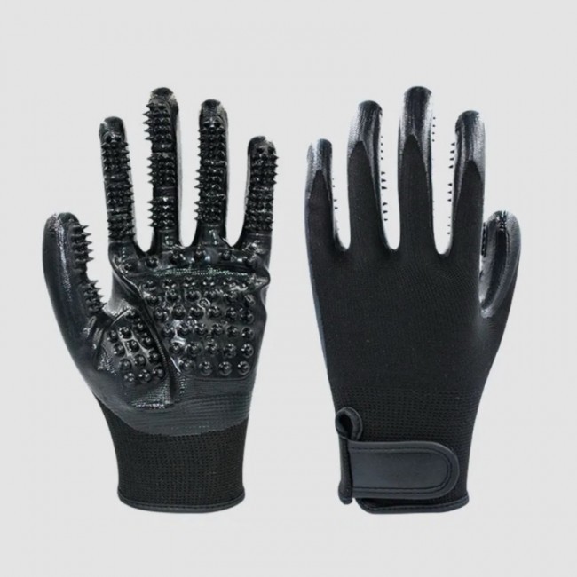 Рукавички виготовлені з трикотажного полотна, яке зроблено з синтетичної нитки. Мають еластичну трикотажну манжету. Долоні та пальці, з внутрішньої сторони долоні, залиті пластиком, поверхня якого імітує зубчики щітки, кінцівки яких мають закруглену форму. Можна використовувати у воді. Гарно видаляють стару шерсть, домашніх улюбленців.