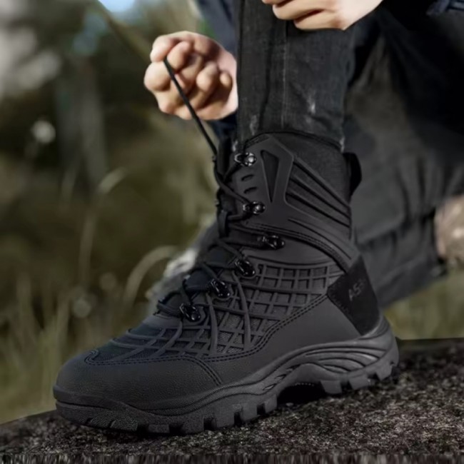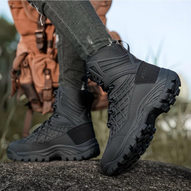 Черевики "AS33" - це модель 2025 року, черевиків призначених для використання у екстремальних умовах ( орні та пішохідні переходи, з частим згинанням, черевика, у різних напрямах, з багаторазовим повним намоканням). Черевики виготовлені із телячої шкіри, з приклеєною трекінговою антиковзкою підошвою. На п'яту нашито спілкову накладку. Черевики оснащені системою стабілізації п`яти та гомілки, та м'якою устілкою вироблену з тканини, що дихає. Шнурівка проходить через зовнішні металеві петлі, виготовлені з антикорозійного металу. Язичок черевика заповненого мікроволокном, зі вставкою що утримує його у потрібному положені. М'яка внутрішня підкладка виготовлена з матеріалу, що дихає, збільшує циркуляцію повітря в середині черевика.
