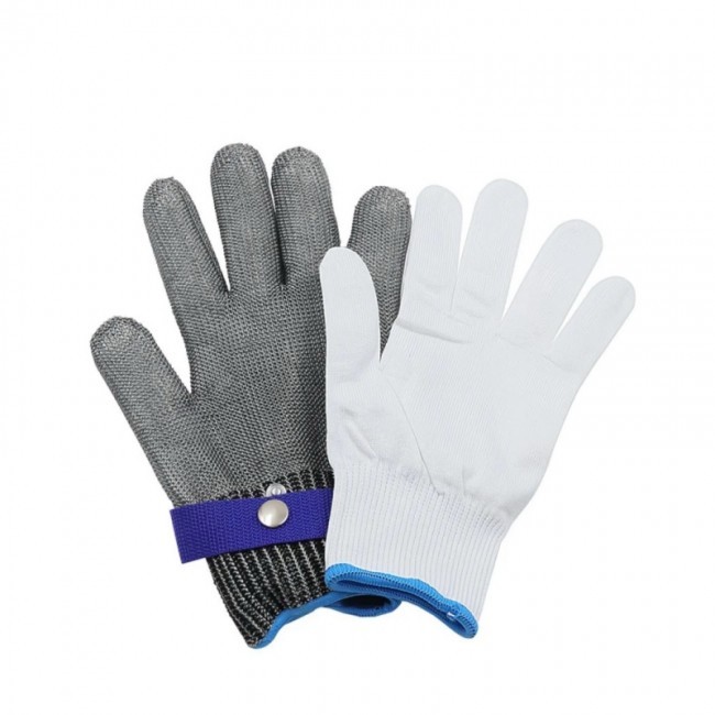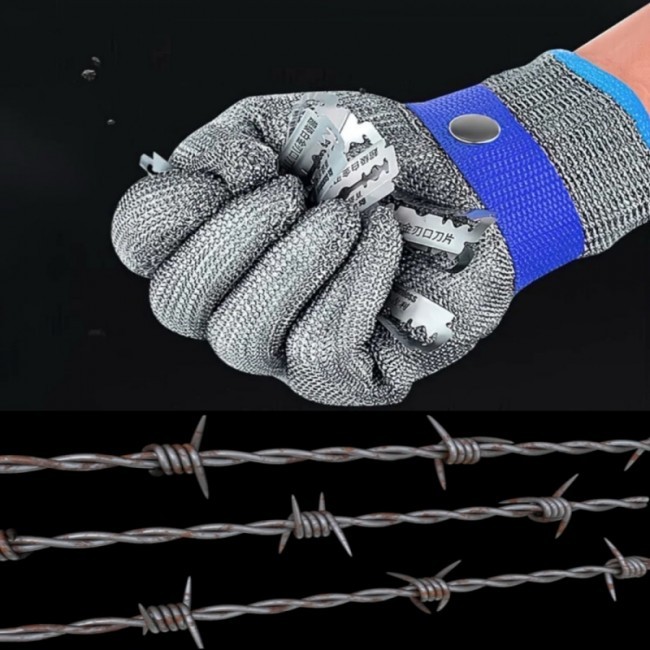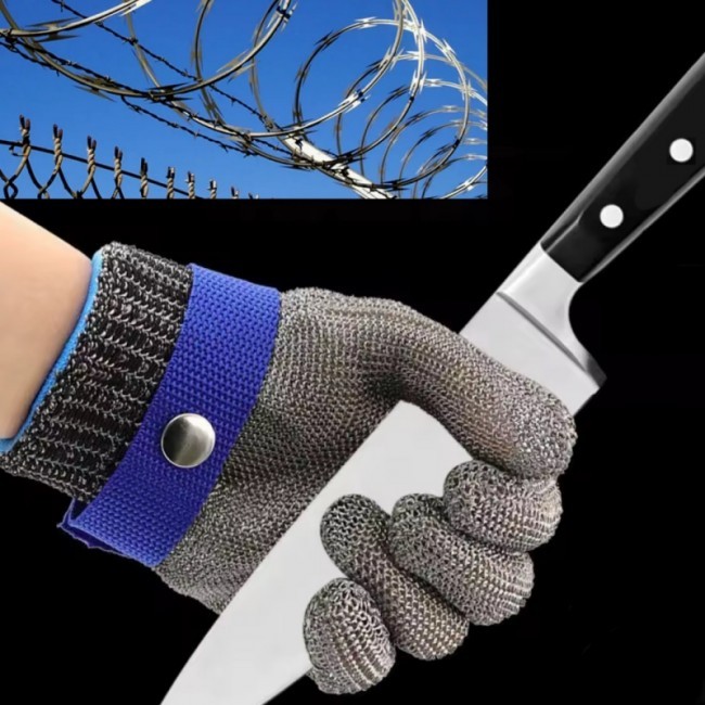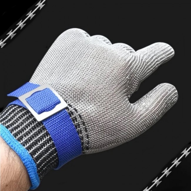 Рукавичка "Єгоза" призначена для розмотування колючого дроту та дроту типу "Єгоза". Виготовлена з нержавіючого дроту(стійкій до корозії, гнучкий, термостійкий, стійкий до порізів) методом плетіння. На манжеті розташовано тканинний ремінець, з металевою пряжкою, що регулює його довжину, та кнопкою, що кріпить ремінець до рукавички. Рукавичка одягається як на праву, так і на ліву руки. Щоб рукавчика не ковзала по руці, під низ необхідно надіти бавовняну трикотажну рукавичку, яка продається у комплекті з рукавичкою кольчужною. Ціна вказана за комплект(1 рукавичка кольчужна, 1 рукавичка трикотажна).