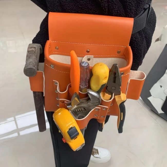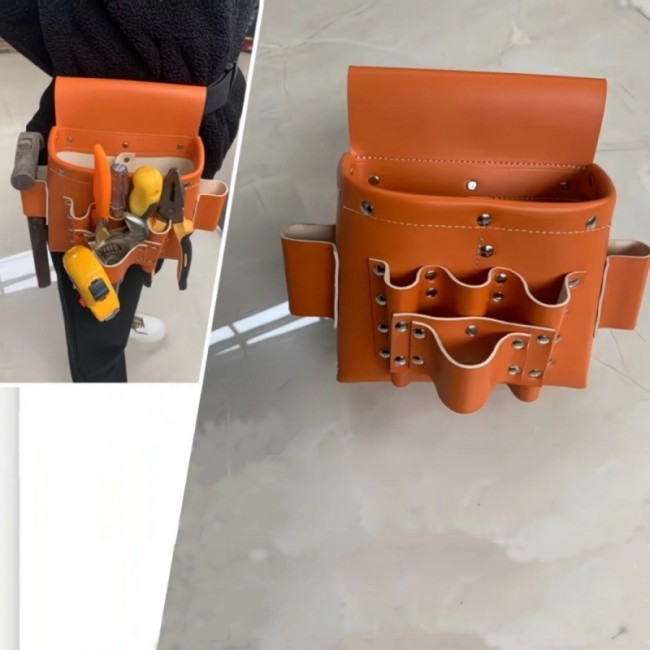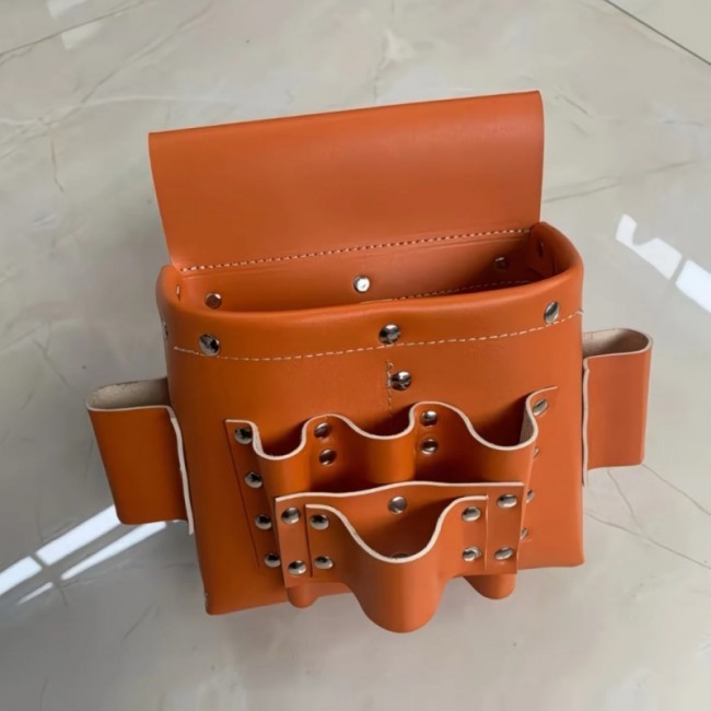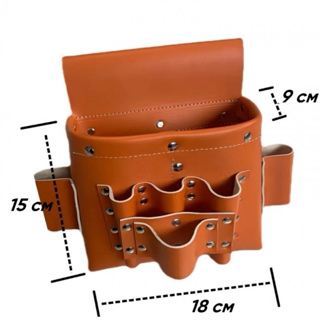 Підсумок для інструменту "61129" - це професійний підсумок для перенесення інструментів під час виробничого процесу. Має одну головну сумку і 7 кишень. Підсумок виготовлено з телячої шкіри, товщиною 7 мм, прошито водостійкими нитками, а місця підвищеного напруження укріплено металевими заклепками. Підсумок носиться на поясному ремені або як сумка одягається через плече.