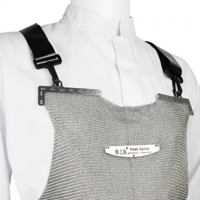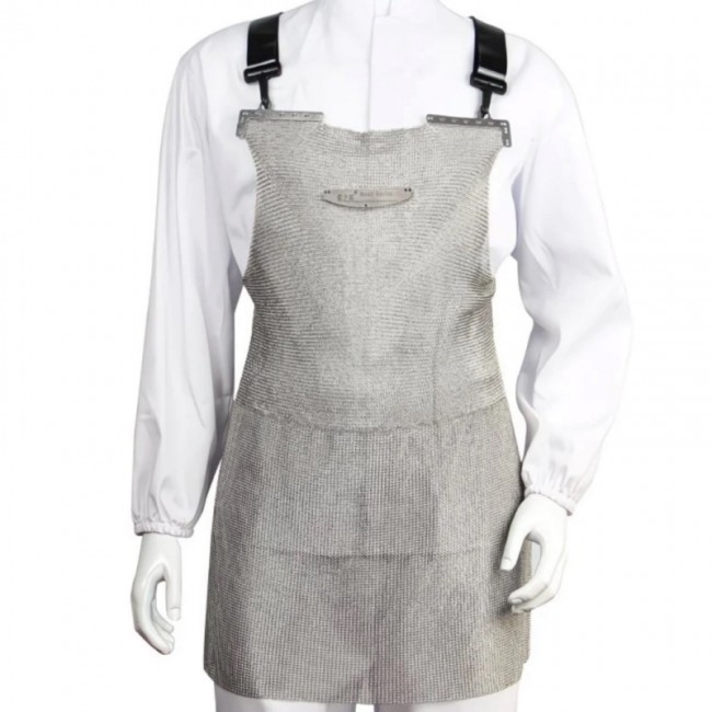 Фартух "Єгоза" кольчужний застосовуються, для захисту тіла, у комплекті з рукавичками "Єгоза"(www.6999.com.ua/catalog/view/1723), при роботі з колючим дротом та дротом типу "Єгоза". Виготовлений з кілець із нержавіючої проволоки. Від нагрудника, через пластикові карабіни, йде два ремені, які перехрещуються на спині, та чіпляються за фартух, через пластикові карабіни, на рівні талії. Ще один ремінь йде, з права на ліву, по талії. На ременях розташовано по одній пластиковій рамці, що регулює довжину ременя. На спині, між плечей розташований пластиковий комунікатор, що утримує ремені разом. Фартух одягається на верх іншого одягу. Має антипрокольні та антипорізні властивості.