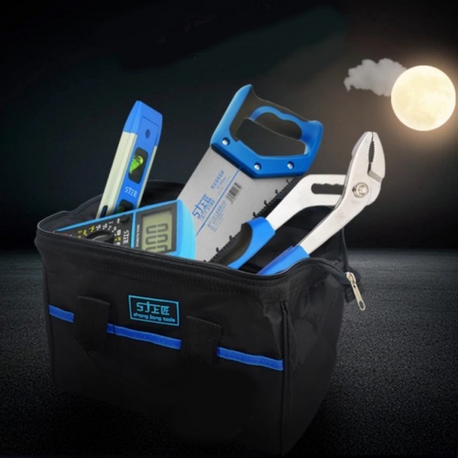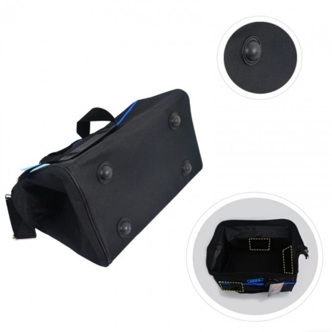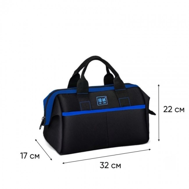 Сумка "61138" для інструменту - це модель міні-сумки типу "саквояж", на блискавці, з великим відділенням та чотирма зовнішніми кишенями. Виготовлена з водонепроникної синтетичної тканини "Oxford 600D". Ручки сумки виготовлені з широкої(3,5 см) поліамідної стрічки, що пришита до верху сумки подвійним швом.
