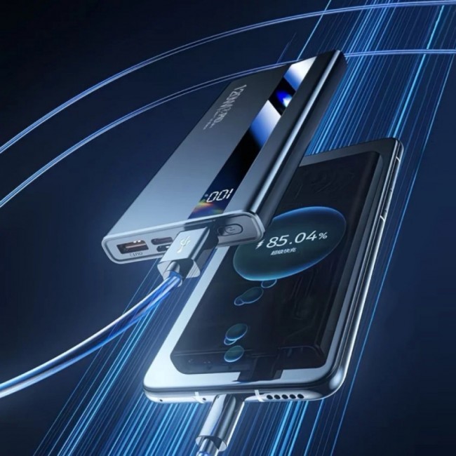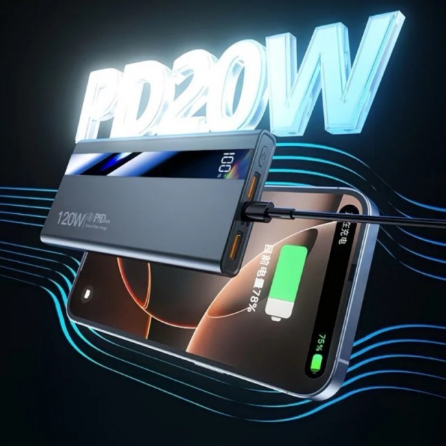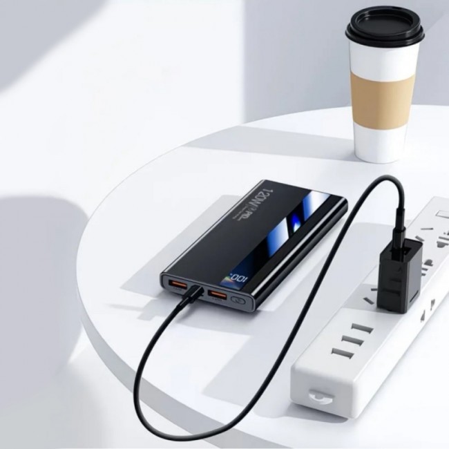 Powerbank "61158" відрізняється сучасним футуристичним дизайном, з органічно вбудованим дисплеєм індикації заряду, з ліхтариком(2 LED), з 4 вхідними портами USB та 3 вихідними портами(Micro, C-Type та Lightning), Призначений для одночасного заряджання 6 гаджетів. Має двонаправлену швидку зарядку(PD20W - Power Delivery 20W) самого повербанка. Вихідна потужність 120W дозволяє заряджати гаджет, до 75% за 30 хвилин. Має багаторівневий захист, а саме від: підвищеної та пониженої вхідної/вихідної напруги, перегріву, короткого замикання, електростатичного поля, перезарядження.