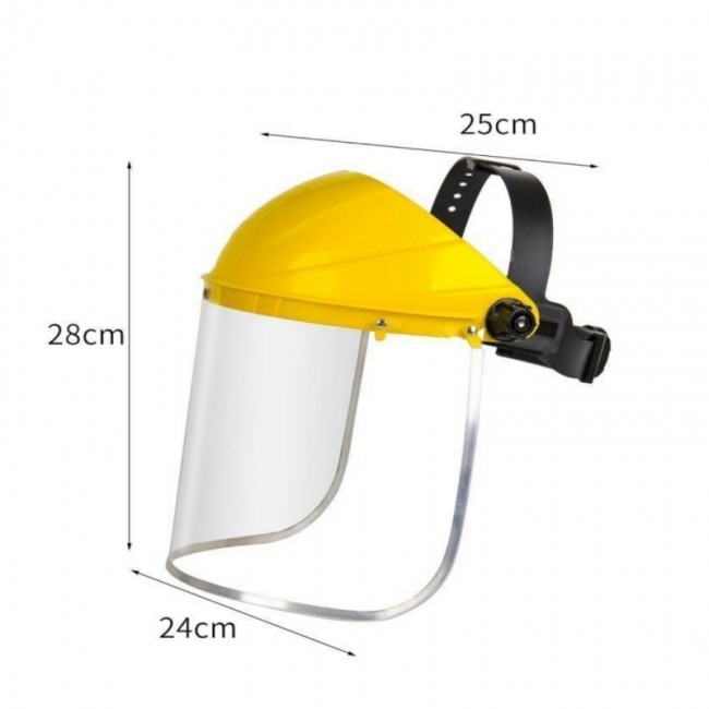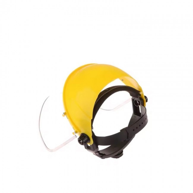 Щиток захисний "НБТ-Полікарбонат" зі змінним екраном, має наголовне пластикове кріплення “Комфорт”, з регулюванням по довжині кола голови та висоті посадки. Козирок жовтого кольору виготовлено з протиударного пластику. Захисний екран, повністю закриває обличчя, та виготовлений з полікарбонату(2 мм). що забезпечує широкий огляд та максимальний захист очей та обличчя.