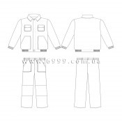 Костюм "РИТИМ"(куртка+штани). Куртка коротка з приточним еластичним поясом. Супатна застібка на гудзиках, комір відкладний. Втачний рукав з еластичною манжетою. Нагрудні кишені накладні, об'ємні, з клапаном на текстильній стрічці, нижні - накладні, обємні, з вхідом на вскіс. Нижня частина коміра жовтого коліру.